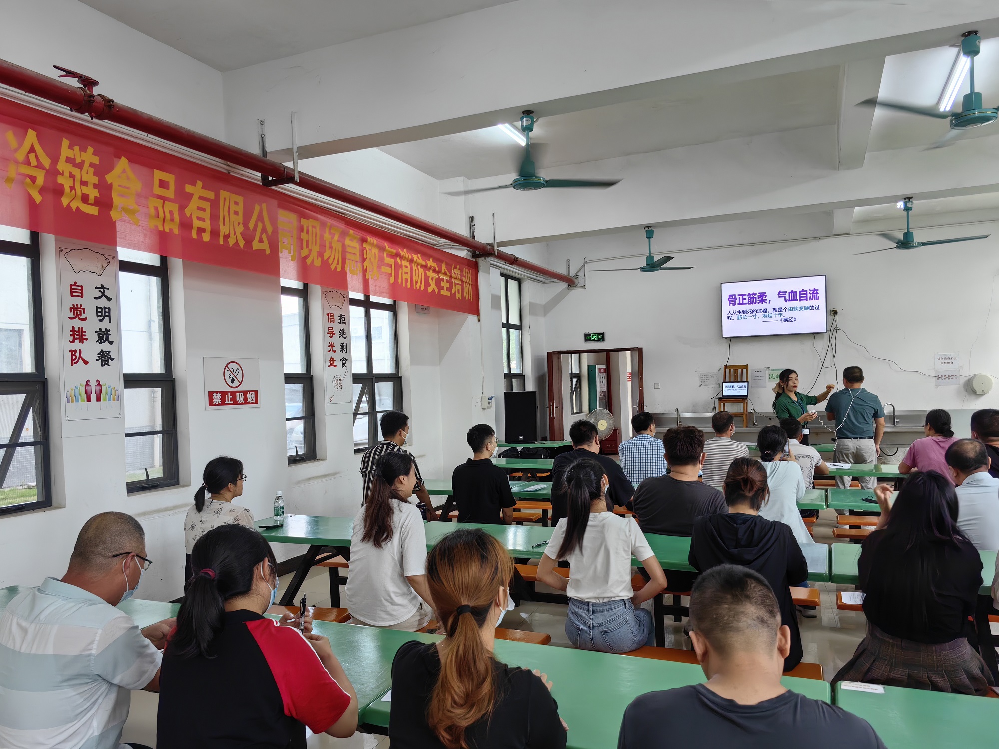 為推動(dòng)學(xué)習(xí)貫徹習(xí)近平新時(shí)代中國(guó)特色社會(huì)主義思想,進(jìn)一步貫徹落實(shí)黨的二十大精神和習(xí)近平總書記關(guān)于安全生產(chǎn)重要論述,以安全生產(chǎn)促進(jìn)公司高速發(fā)展。5月25日,北海冷鏈公司在員工食堂開展了現(xiàn)場(chǎng)急救與消防安全培訓(xùn),公司領(lǐng)導(dǎo)干部職工以及租戶企業(yè)從業(yè)人員共60余人參加了本次培訓(xùn)。