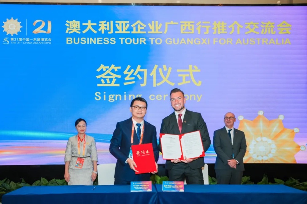9月24日,在廣西南寧舉辦的第21屆中國(guó)—東盟博覽會(huì)澳大利亞企業(yè)廣西行推介交流會(huì)上,廣西五礦集團(tuán)所屬五礦資源公司與澳洲NEW START集團(tuán)共同簽署鋁錠購(gòu)銷意向協(xié)議,東博會(huì)秘書處秘書長(zhǎng)韋朝暉、副秘書長(zhǎng)梁藝光、澳大利亞駐廣州總領(lǐng)事康天幕見證簽約儀式。同時(shí)為就協(xié)議及合作事項(xiàng)進(jìn)行深入磋商,雙方于25日召開座談會(huì)并達(dá)成系列意向共識(shí)。